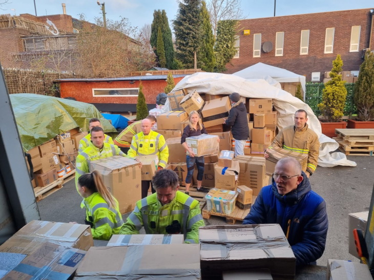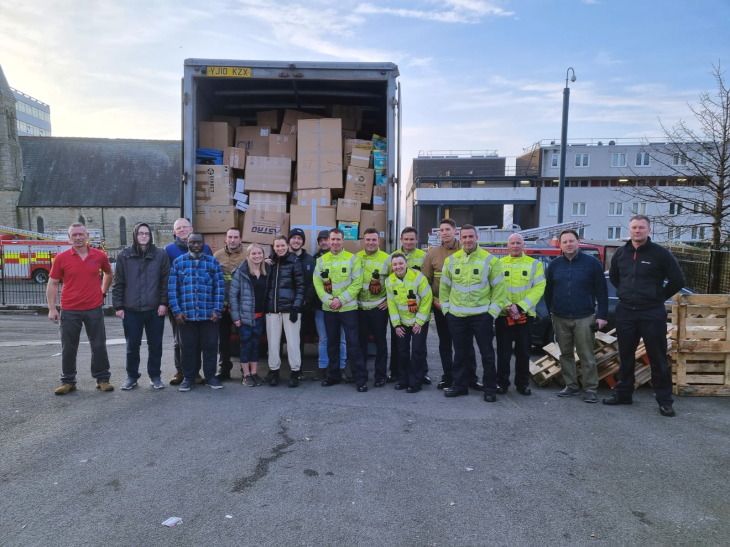 Polish volunteers and English firefighters in Newcastle packed 18 tons of parcels to help refugees from Ukraine.